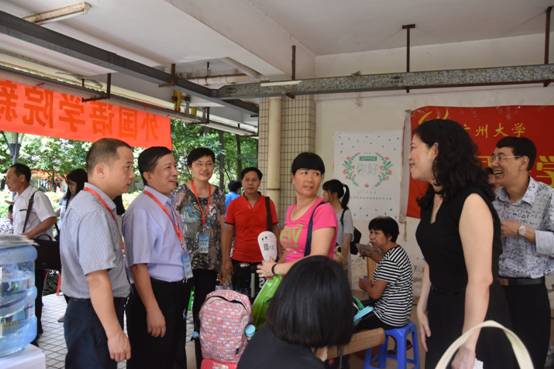 特别值得一提的是,广大校长魏明海一行来到外院迎新点进行巡视,一路仔细察看,并与在场的家长亲切交谈。