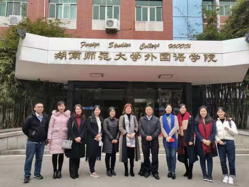 院长肖坤学教授带队,学院教学副院长苏远连教授、英语系主任陈姝副教授、副主任陈丽虹副教授、杨冬玲副教授、翁素贤老师、温静老师、王希腾老师、教务办严江殷老师、学工办辅导员黄顺婷老师和廖沛玲老师一行11人,赴湖南师范大学色漫网
