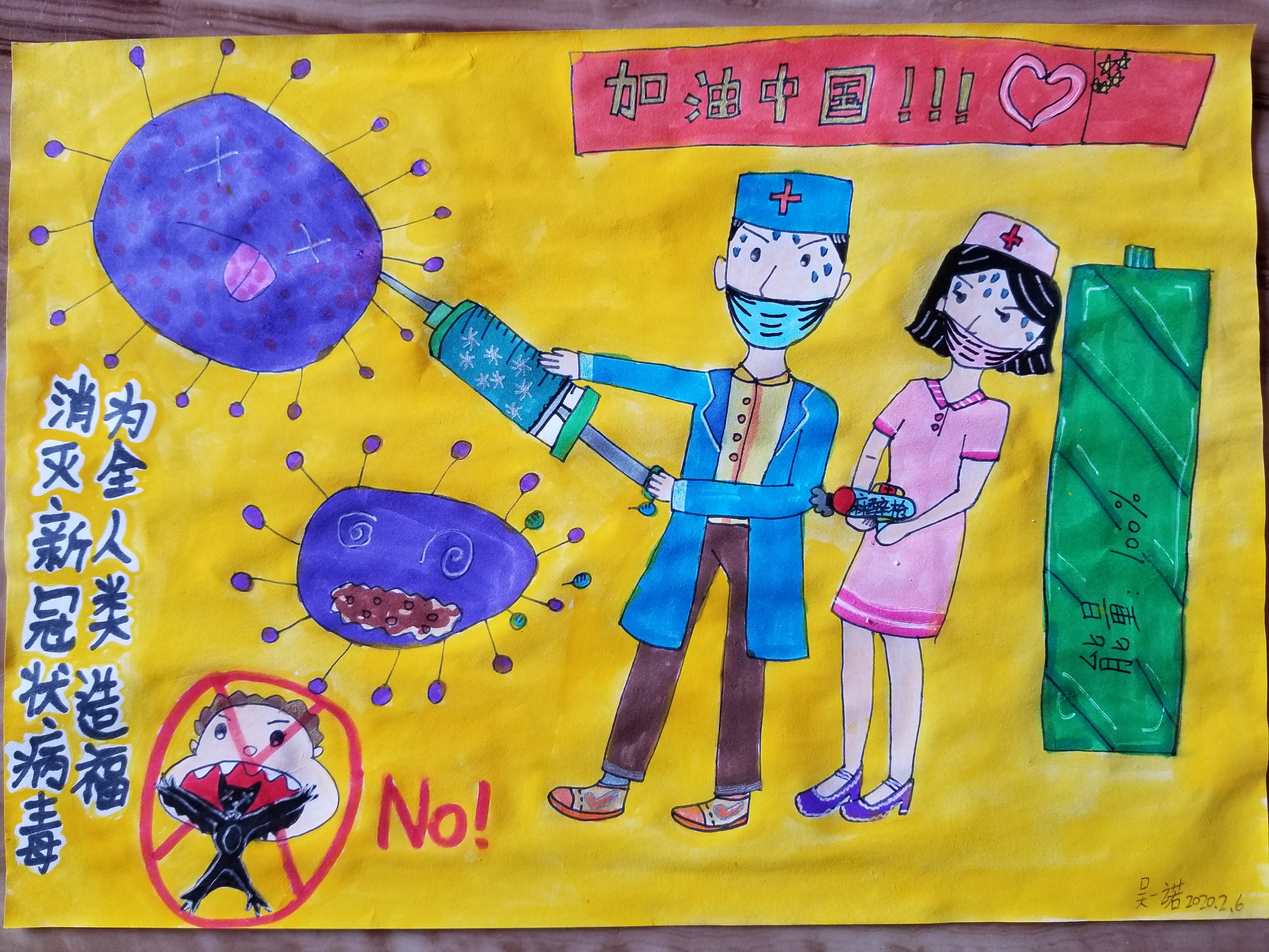(魏育芳老师女儿诺诺(11岁)的画作《加油中国》)