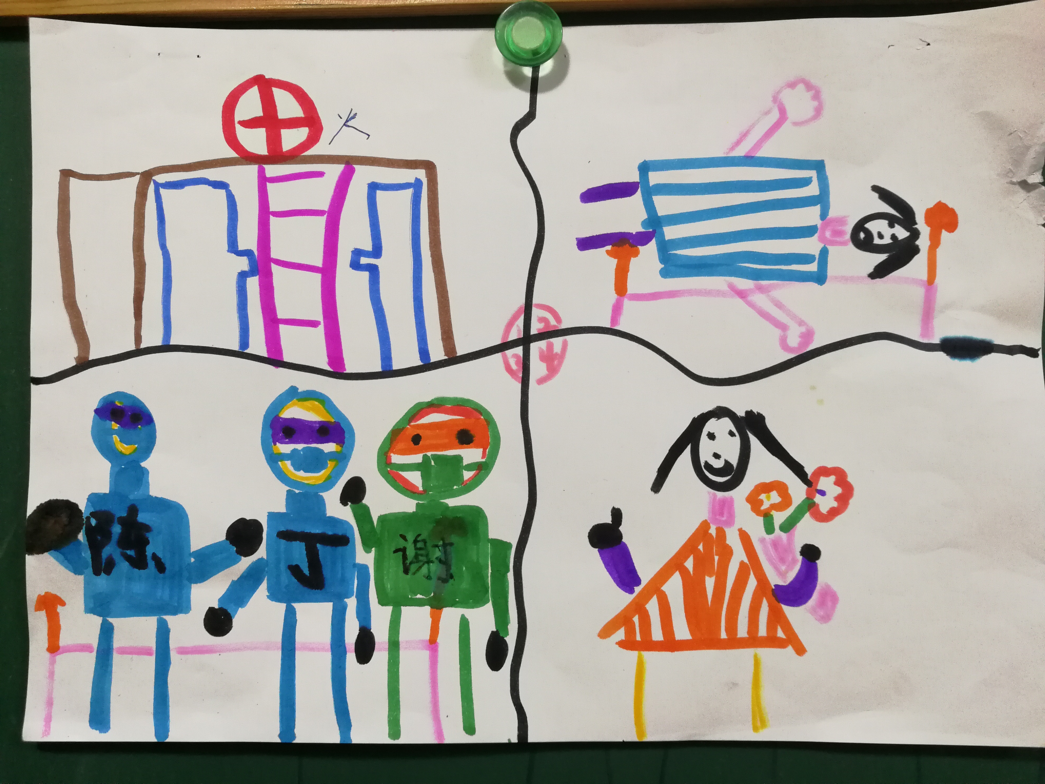 (张新老师女儿丸子(6岁)的四格漫画《战疫故事》)