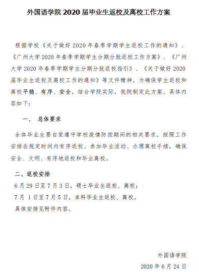 2020届毕业生返校及离校工作方案》,全力做好毕业生返校各项准备工作。