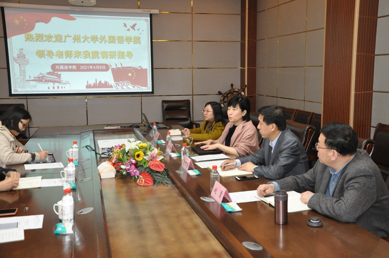 院长王卓教授、学院党委书记岳希亮、英语系主任刘震副教授和西语系主任曹淑娟副教授出席了座谈会。