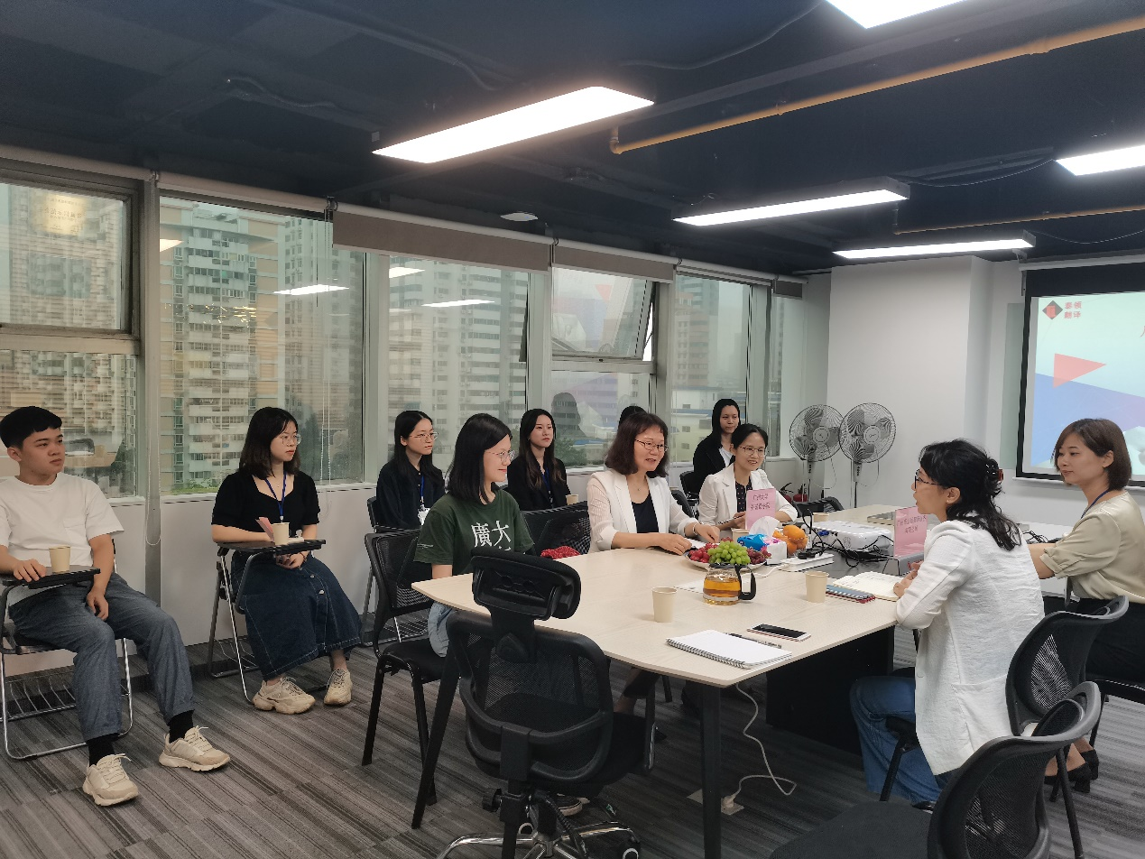 座谈会上泰领对7位实习学生的表现给予高度赞扬,并邀请17级实习生代表巫继鸿、吴宛蓉同学,16级毕业生、泰领在职译员朱燕丹分享了实习与工作经验和心得,此次分享为实习生互相学习借鉴提供了宝贵机会,也给学院翻译专业人才培养模式带来一定的启发。