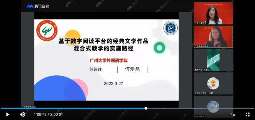 苏远连、何爱晶两位教授应邀担任主讲嘉宾,做了题为“基于数字阅读平台的经典文学作品混合式教学的实施路径”的主旨发言。此次分享会通过腾讯会议、腾讯直播和钉钉会议等线上平台举行,超过2000人参加了会议。