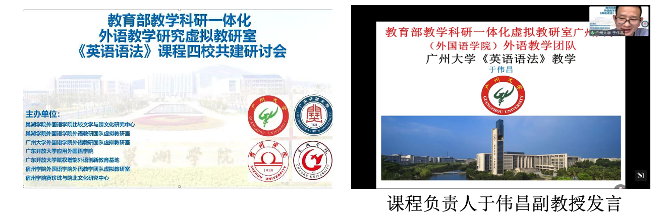 、巢湖学院、广东开放大学、宿州学院四校共建教育部教学科研一体化外语教学研究虚拟教研室《英语语法》课程线上研讨会成功举办。