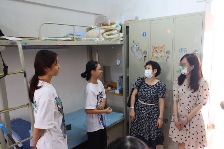 迎新报到情况,对迎新工作安排表示肯定,慰问参与迎新工作的师生。学院院长王晋军教授、党委书记李暖均、党委副书记许多恬在报到点同2022级新生亲切交谈,并与2022级班主任老师们走访学生宿舍,鼓励新生尽快适应生活,利用大学时光提升自我。同时还叮嘱新生树立反诈意识,遵守学校相关疫情防控措施,共筑防疫长城。