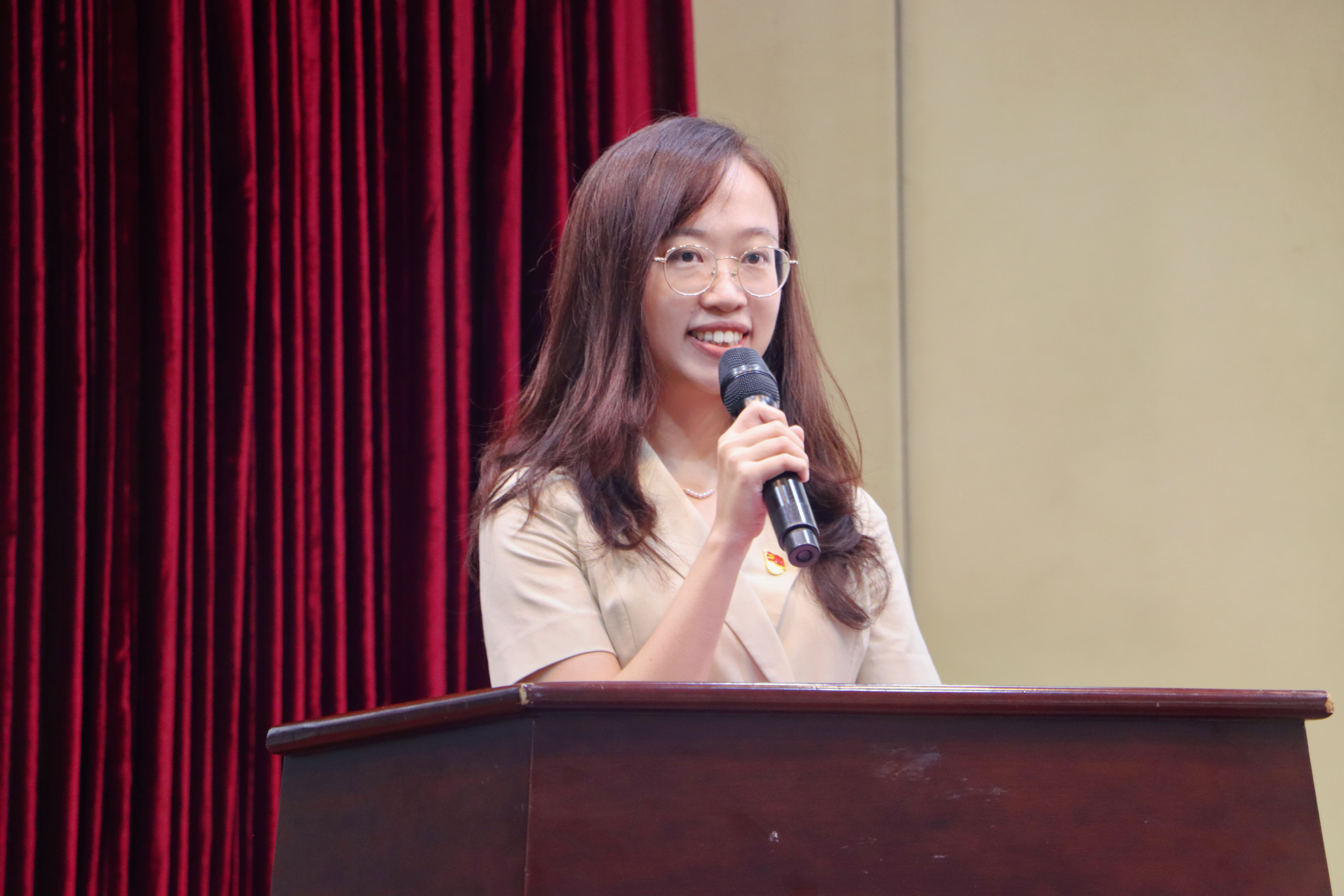 度过了四年本科生活的“老广大”,她用自己的亲身经历和感受,分享了在桂花岗感受到的浓厚学术气息与热气腾腾人间烟火交织的美,鼓励师弟师妹们多发现桂花岗独特的美。同时她与大家分享了三点宝贵经验:一是志存高远,脚踏实地;二是知行合一,领悟实践的真知;三是稳住心态,寻找自我价值。相信师弟师妹们在人生的新征程上会不断取得新成绩,在外院看见光,追逐光,成为光。