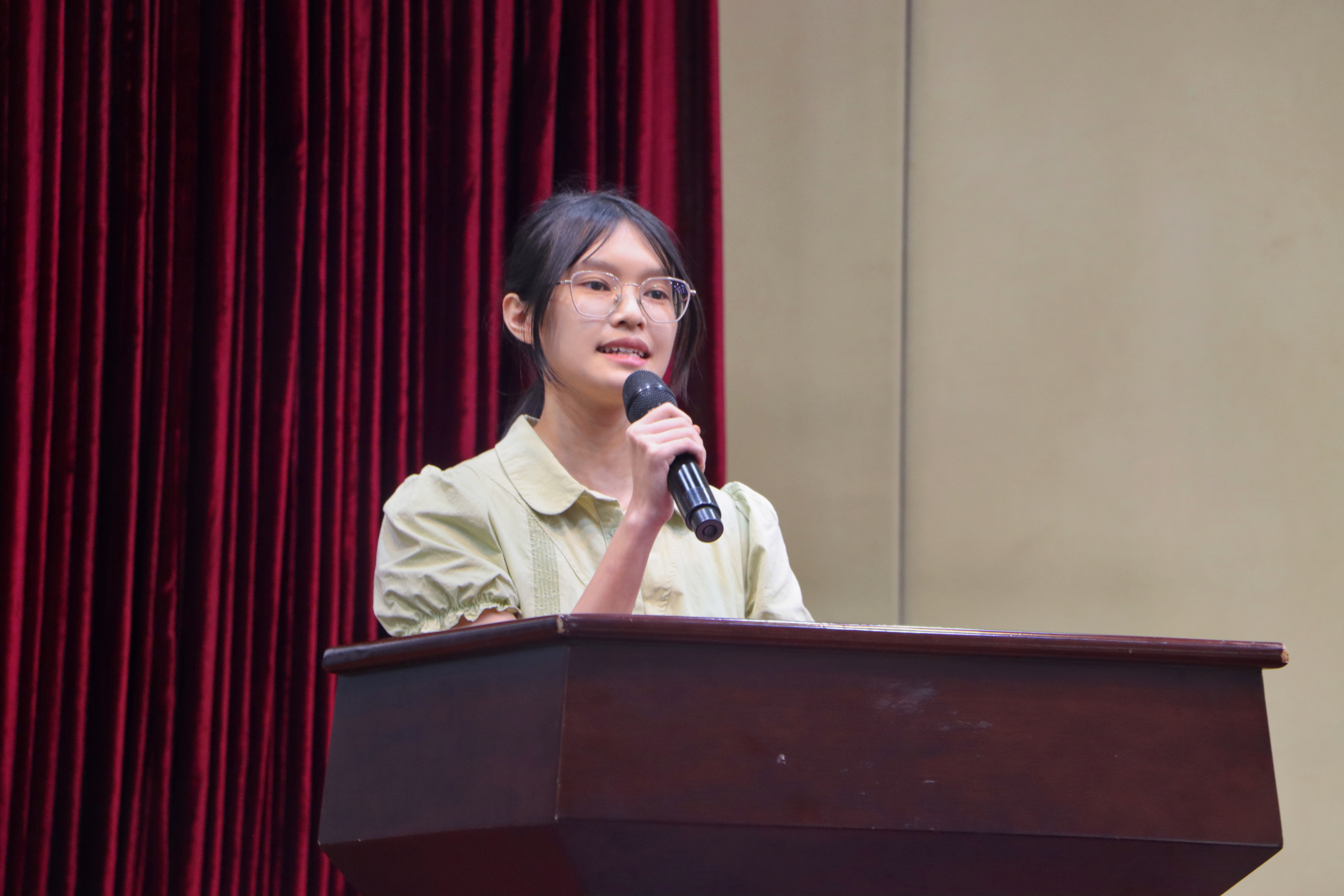 学生会执行主席、英语216班的叶苗同学作为老生代表发言,希望大家能珍惜外院的四年时光,并借《礼记•中庸》中的名句给大家送上寄语:博学之,审问之;明辨之,笃行之。衷心祝愿外院青年在未来的求学之路上踔厉奋发,能在广大、在外院解锁个人的无限可能。