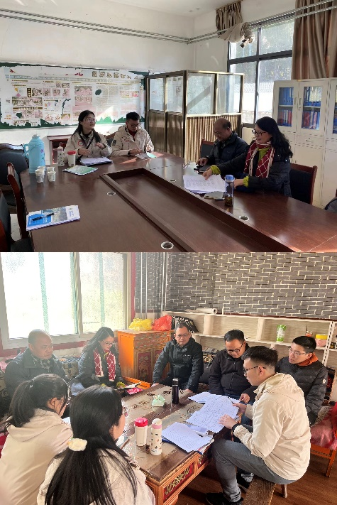 在评课环节之后,陈姝主任在古乡中心小学校长王战波、教导处主任吴浩及四名支教实习生的陪同下,参观考察了校园的教学环境与实习生宿舍环境,亲切问候实习生的高原生活和教学适应情况。