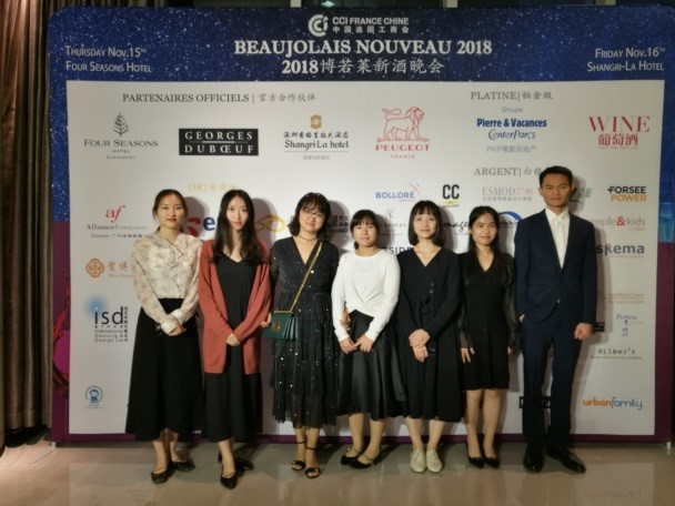 西语系法语151班的4名同学在此次晚会中担任志愿者,进行志愿服务。除了4名志愿者外,还有在法商会广州办事处的3名实习生,组成7人法语系小分队,为本次晚会贡献力量。西语系副主任陈潇老师来到现场指导学生的实践活动。
