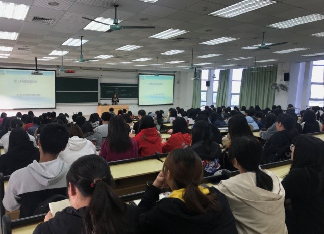 首先,苏远连副院长向同学们介绍了我校学分制改革的政策,其目的在于为同学们提供更个性化、更自主的学习选择,学分制实施的是弹性学制,同学们可以在3-7年内根据自身的实际情况完成学业,并再一次强调了2018年版人才培养方案的关于通识类必修课、通识类选修课、专业必修课、专业选修课等不同类型课程的修读要求,之后,对学校的学分制管理规定、收费办法等文件进行了解读。接着,郭幼韦老师向同学们介绍了选课系统,对29日选课系统开放时不同课程尤其是选修课程的操作指引作了详细的介绍,系主任对注意事项作了补充说明。