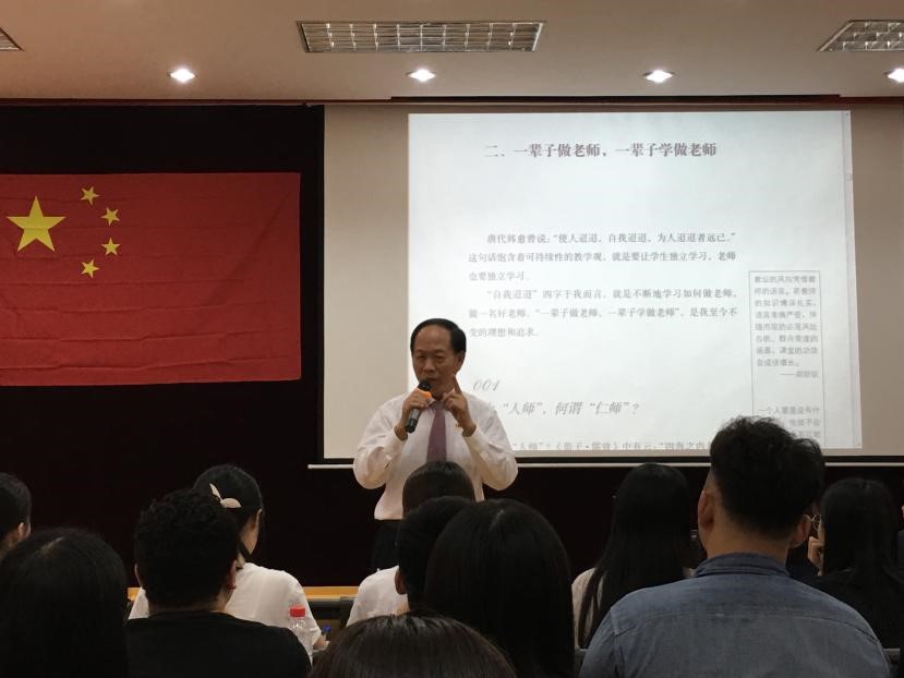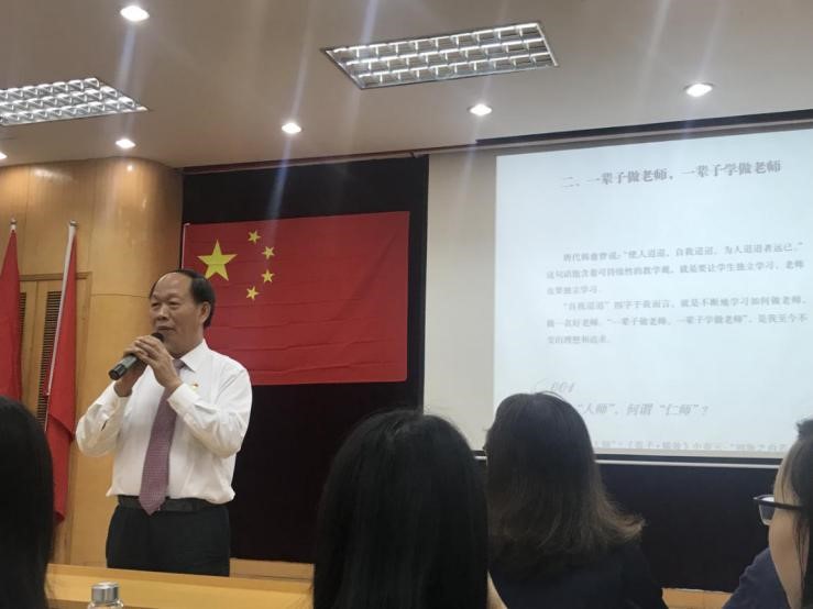 接着,郑校长表达了他的追求:“一辈子做老师,一辈子学做老师”!他