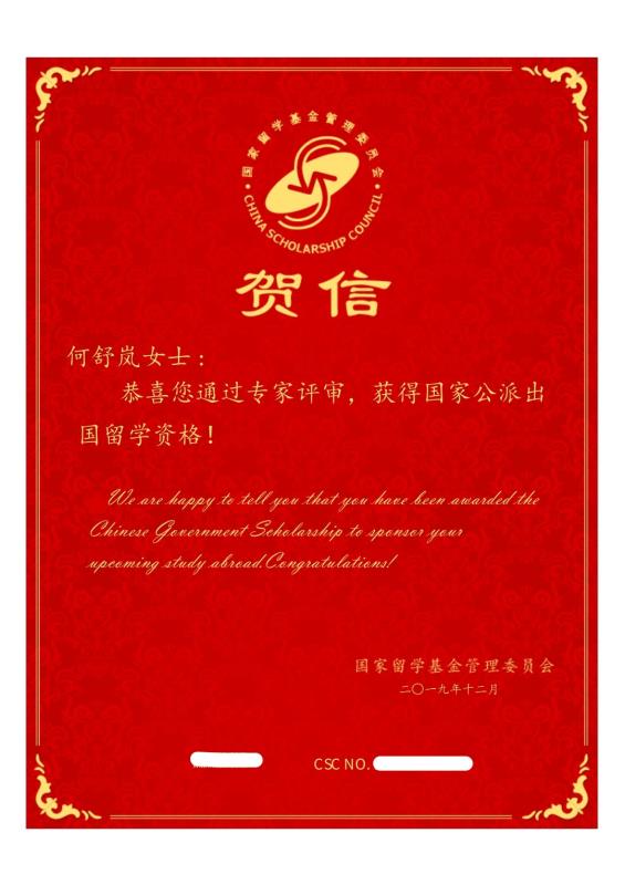 177班孙周怡和179班何舒岚同学通过国家留学基金管理委员会专家评审,荣获国家公派出国留学资格,并荣获国家留学奖学金。