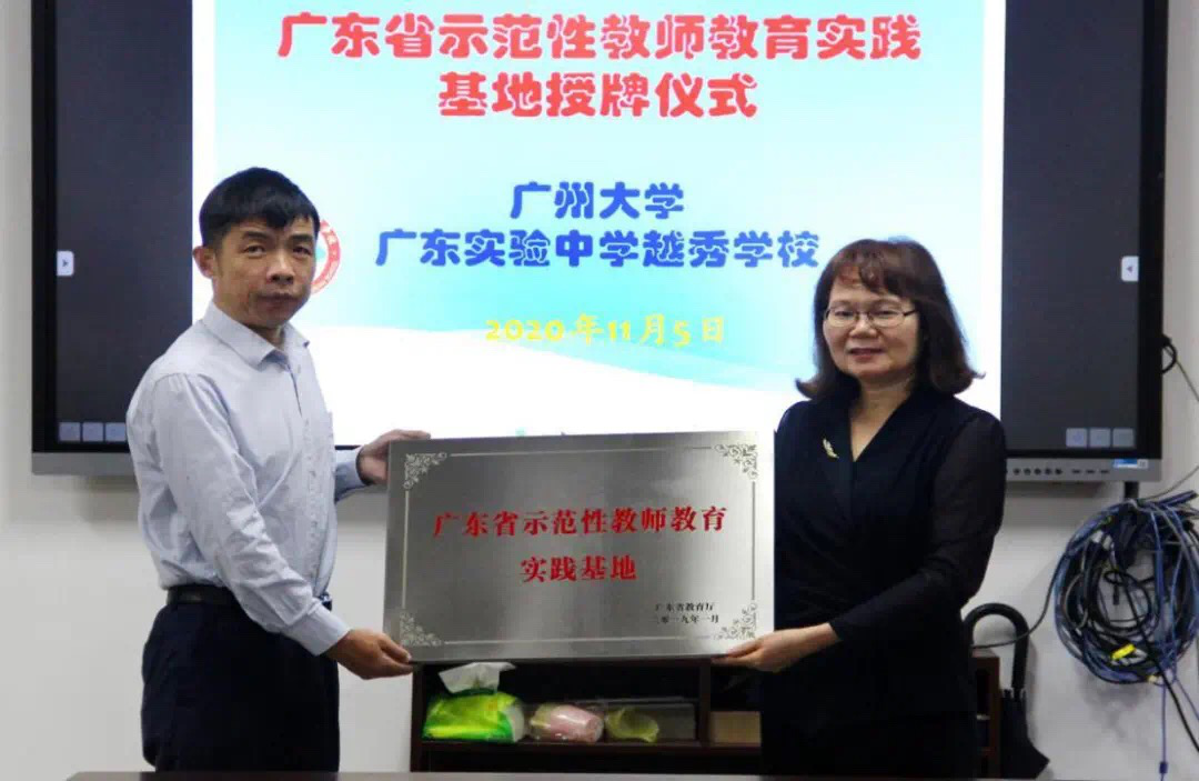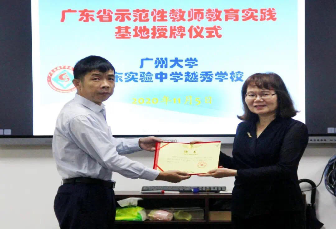 省级示范性教师教育实践基地授牌仪式在广东实验中学越秀学校举行。苏远连副院长向广东实验中学越秀学校戎振纲校长授牌。色漫网