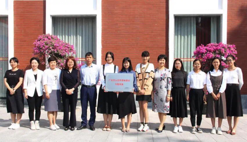 马静雅副教授、全体实习生和广东实验中学越秀学校周海珊主任、曾魏华副主任以及教师代表一同参加了授牌仪式。