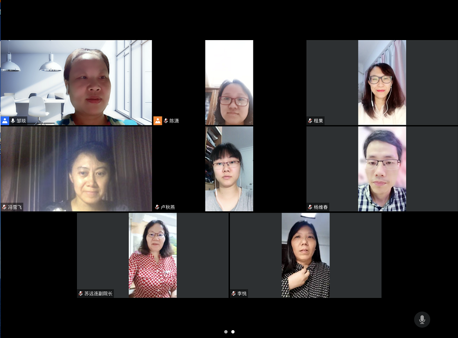 苏远连副院长、西语系邹琰主任、陈潇副主任、专任教师冯雪飞、卢秋燕和李悦参加了这次会议。