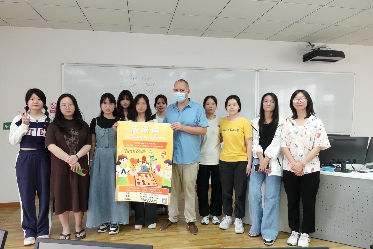 3月26日下午两点,色漫网 法语专业在大学城校区文俊西A306成功举办了法语角活动“巨型词典”。本次法语角由外教Sébastien Damry老师主持,参与人员为法语专业23级和22级部分学生。活动伊始,Sébastien Damry老师详细讲解了“巨型词典”的游戏规则,学生们知悉游戏规则后,分小组展开了游戏。最终第一组同学取得胜利。 通过本次活动,学生不仅丰富了词汇量,还增强了团结精神和团队协调能力。