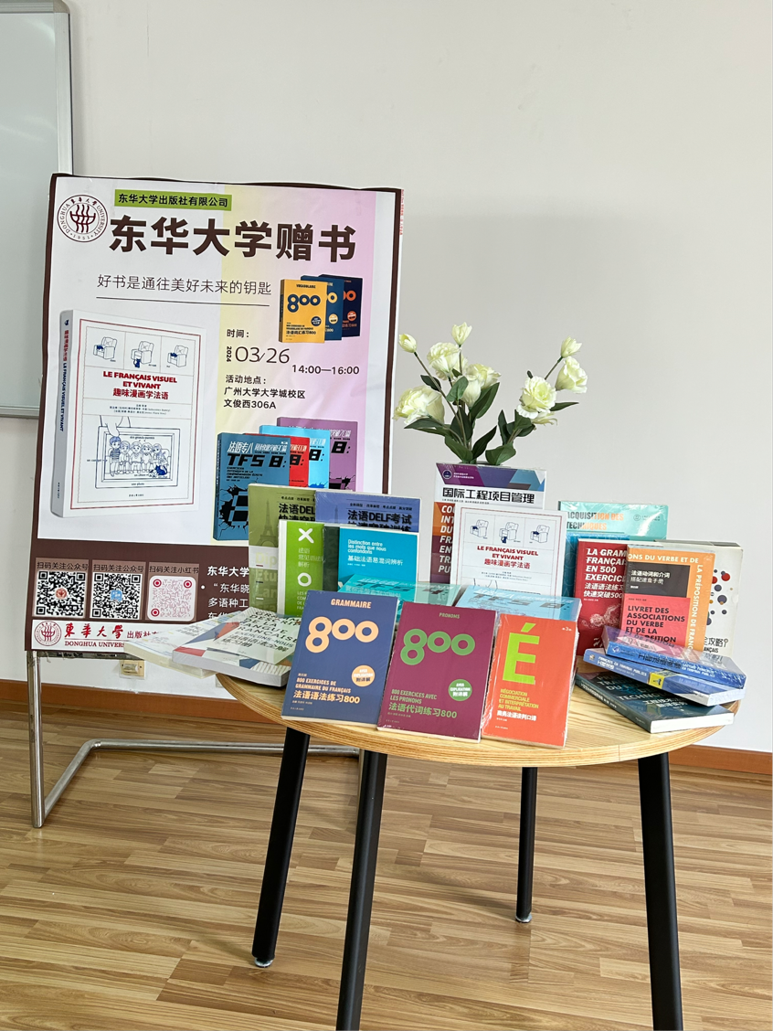 陈潇老师首先表达了对东华大学出版社的感谢,介绍了此次展出的各类法语图书。之后,老师与同学们一起上台品悦图书,分享心得。此次师生共读加强了师生情谊,提高了学生们的阅读兴趣,营造了浓厚的法语文化氛围。