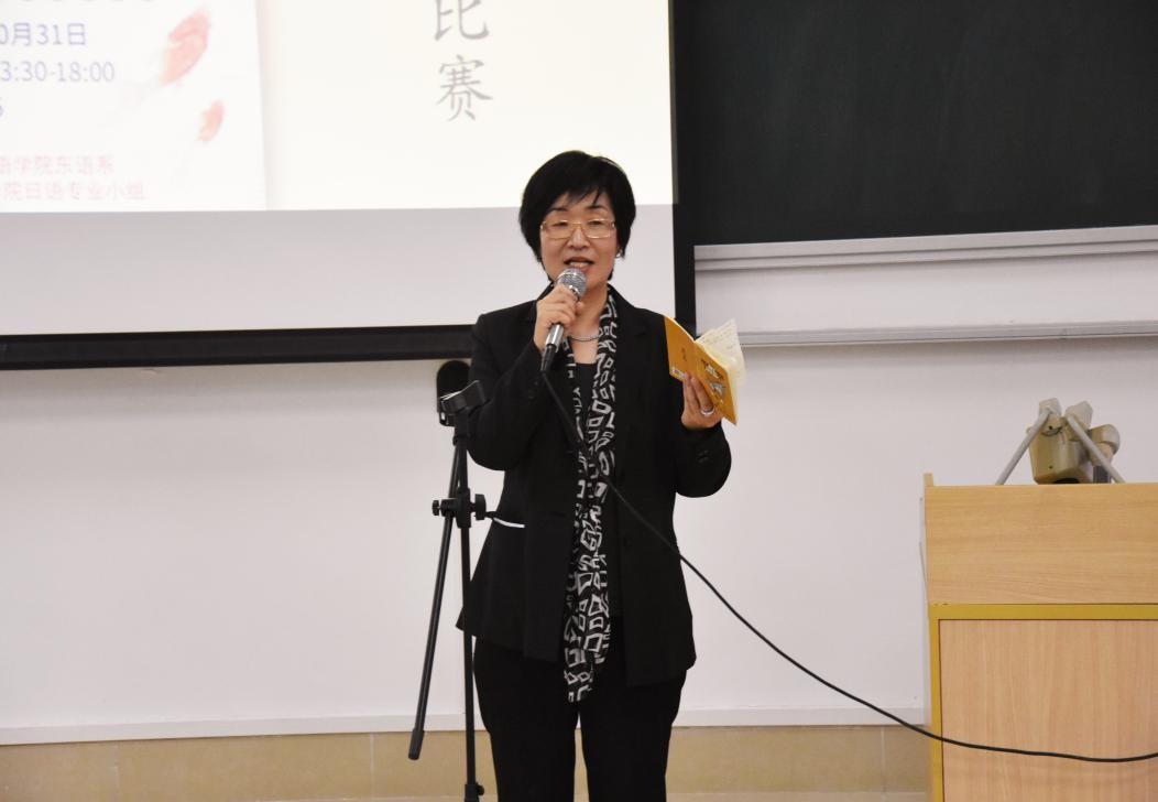 副院长苏远连莅临现场,东语系主任魏育芳,东语系书记李莹莹,东语系副主任彭英,以及东语系9位教师担任评委。