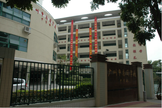 广州市南国学校前身为华师附属南国实验学校,原是一所私立学校,2010年收归公办,目前是一所九年一贯制的学校,有教学班26个,学生1300多人,教职员工108人,学校占地面积23612平方米,绿化面积9255.9平方米,绿化率达39.2%。