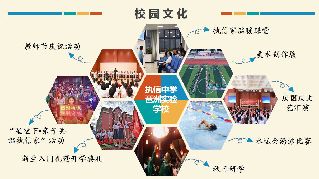 广州市执信中学琶洲实验学校坐落在琶洲互联网创新聚集区,拥有优良的社区环境,是一所九年一贯制的学校。学校占地总面积为30293.6方米,设有小学部和中学部共41个教学班,现有学生1671人,教师115人。是一支年轻有活力的队伍。博士学历1人,占0.87%,研究生学历61人,占53.04%,本科学历51人,占44.35%,专科学历2人,占1.74%,学历达标率100%。高级教师8人,南粤优秀教师1人、广州市“百千万人才培养工程”培养对象5人,广州市骨干教师1人,教坛新秀2人,广州市、海珠区教研室学科中心组成员等区级以上骨干教师14人。