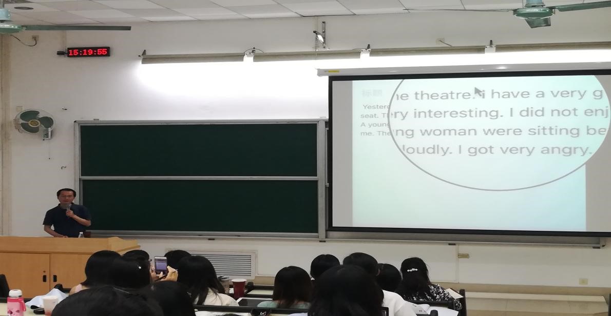 4月23日下午, 华南师范大学外文学院英语系主任刘晓斌副教授为色漫网 师生带来了一场以“核心素养·新技术·听说教学”为主题的精彩讲座。作为华南师范大学外语教育信息化研究中心主任、广东省高等教育学会教育技术专业委员会常务理事,刘老师主持国家级精品在线开放课程及全国首届百门“最美慕课”《英语教学与互联网》,在教育技术方面颇有建树。此次讲座,刘老师从英语学科核心素养要求出发,针对听说教学的实际应用,介绍了如何运用教育技术提高英语听说教学。
