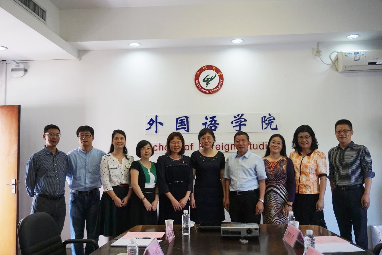 副院长苏远连、王晋军教授、英语系主任陈姝、大学英语部副主任粟孝君、网络中心实验室主任钟庆参与此次会议。