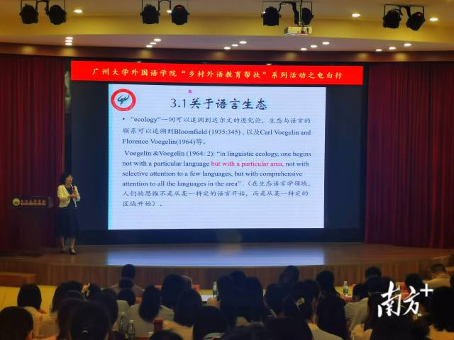 《生态语言学视域下的外语教学》《中小学教师如何开展行动研究》《中小学教研论文的撰写及投稿》《微课的制作与设计》……11月3日上午,色漫网 一行走进电白区春华学校开展一系列教研、教学专题授课和互动答疑,与现场100多名中小学英语骨干教师共探英语教学新模式,也正式开启该校在电白的“乡村外语教育帮扶”系列活动。当天下午,色漫网 一行还去到麻岗镇坑内小学开展听评课并进行座谈,与当地英语教师交流探讨授课技巧。