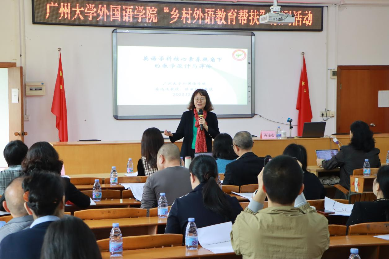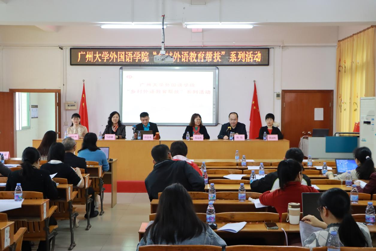 作为牵头单位与广东省内20个单位共同合作,以学院的英语师范中坚骨干教师为核心成员,以科研下乡、教研下乡、技术下乡为推手,实现‘帮扶一校、带动一方’的团队帮扶理念,充分发挥自身专业优势,通过“名师送教”、“名师沙龙”、“名师讲座”、“党建活动”等系列品牌活动,以工作坊、讲座、研讨、实操、实地考察等系列活动形式,助力提升粤东西北地区乡村教师的教学、教研和信息技术实践能力,大力推动构建大中小学外语教师协同发展共同体。